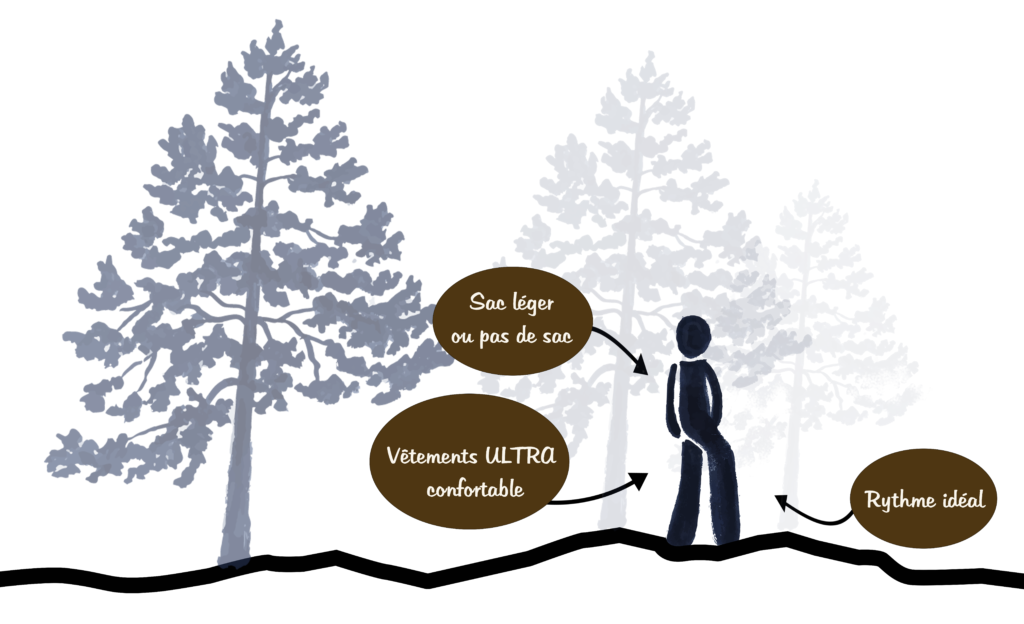 Quand on marche trop vite, le cerveau reçoit vraiment beaucoup d’informations… du coup, il priorise, et met la plupart de nos sensations en “mode veille”.